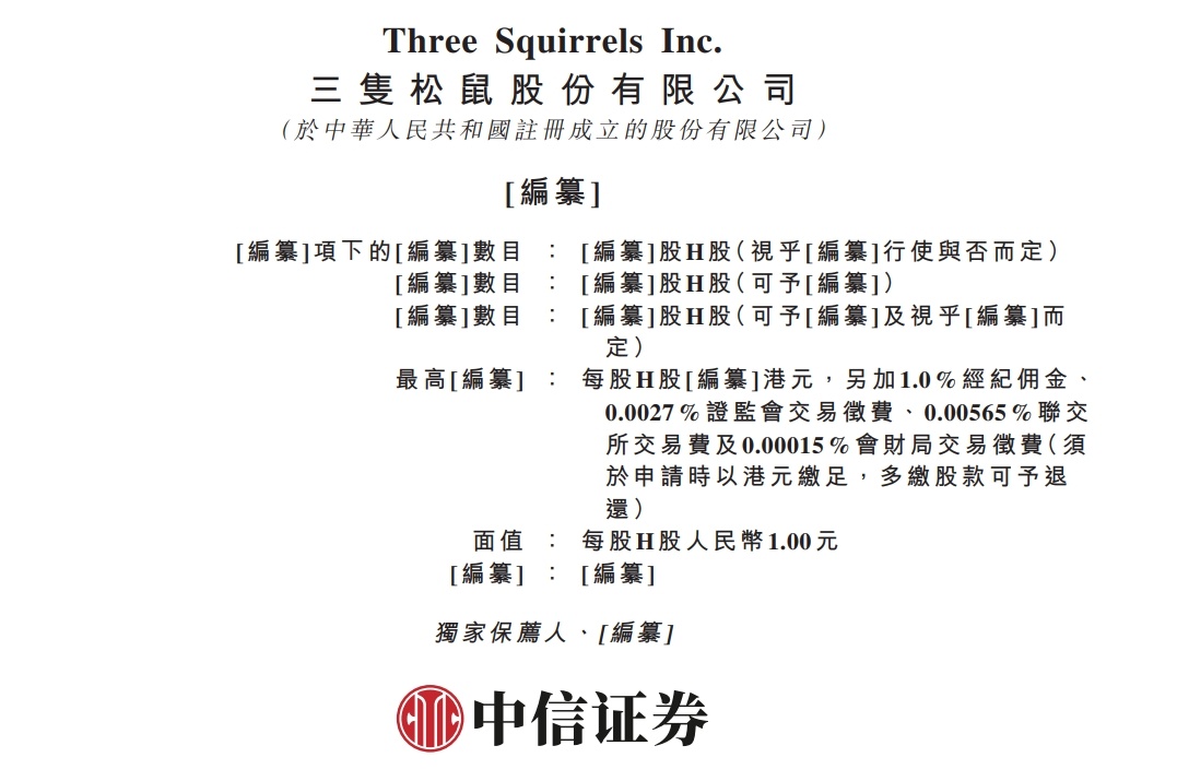 智通财经APP获悉,据港交所4月25日披露,三只松鼠股份有限公司(简称:三只松鼠)递表港交所主板,中信证券为其独家保荐人。
