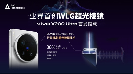 综合vivo和瑞声科技官方消息,近日vivo发布的高端旗舰手机 X200 Ultra,创新使用了业界首创的WLG三合一超光棱镜(power prism)。