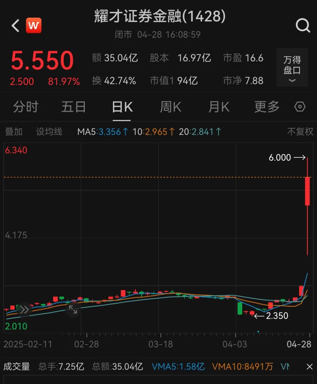 4月28日,港股耀才证券金融(01428)一度涨超96%,收盘涨超81%。