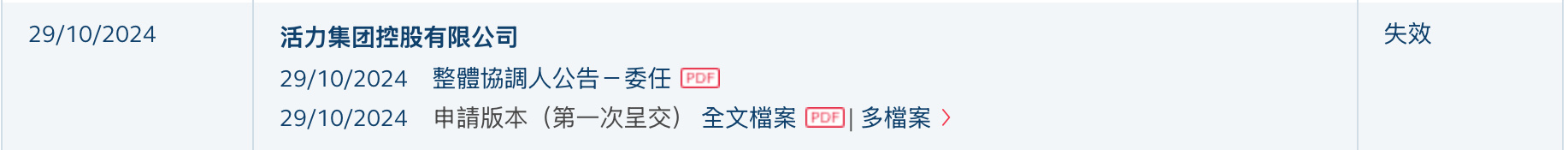 智通财经APP获悉,活力集团控股有限公司(简称:活力集团)于2024年10月29日所递交的港股招股书满6个月,于2025年4月29日失效。