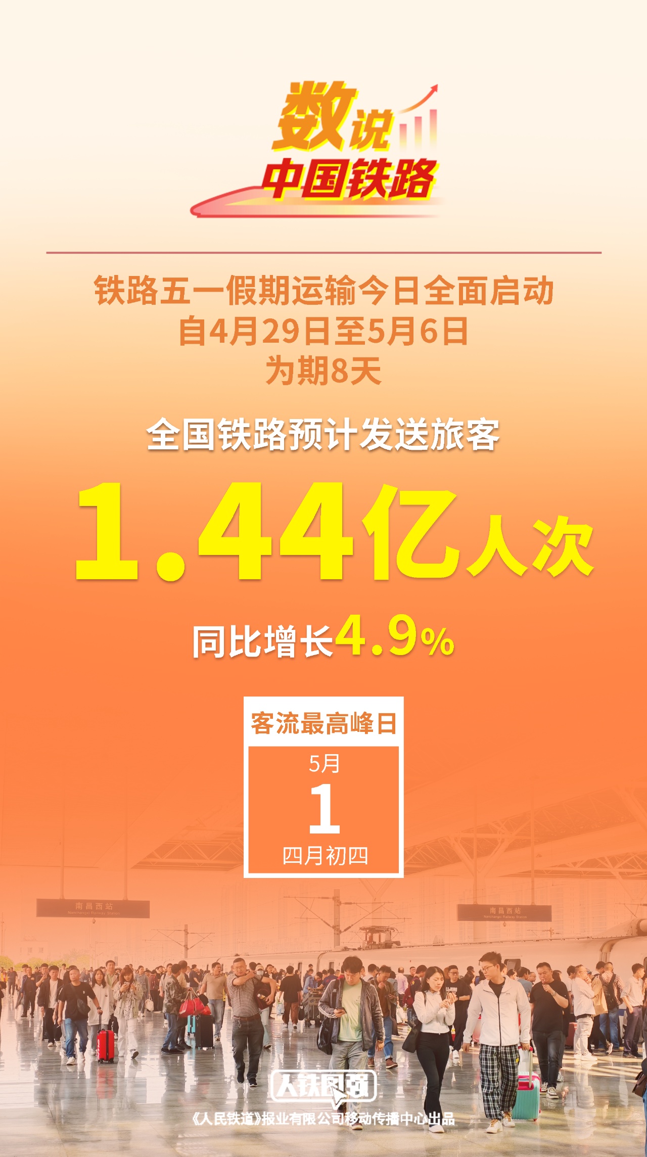 智通财经APP获悉,据中国铁路消息,铁路五一假期运输今日全面启动,自4月29日至5月6日,为期8天,全国铁路预计发送旅客1.44亿人次、同比增长4.9%,客流最高峰为5月1日。今年五一假期,旅客探亲、旅游、踏青等出行意愿强烈,客流呈现出行总量大、头尾高度集中、中间中短途客流增多的特点。