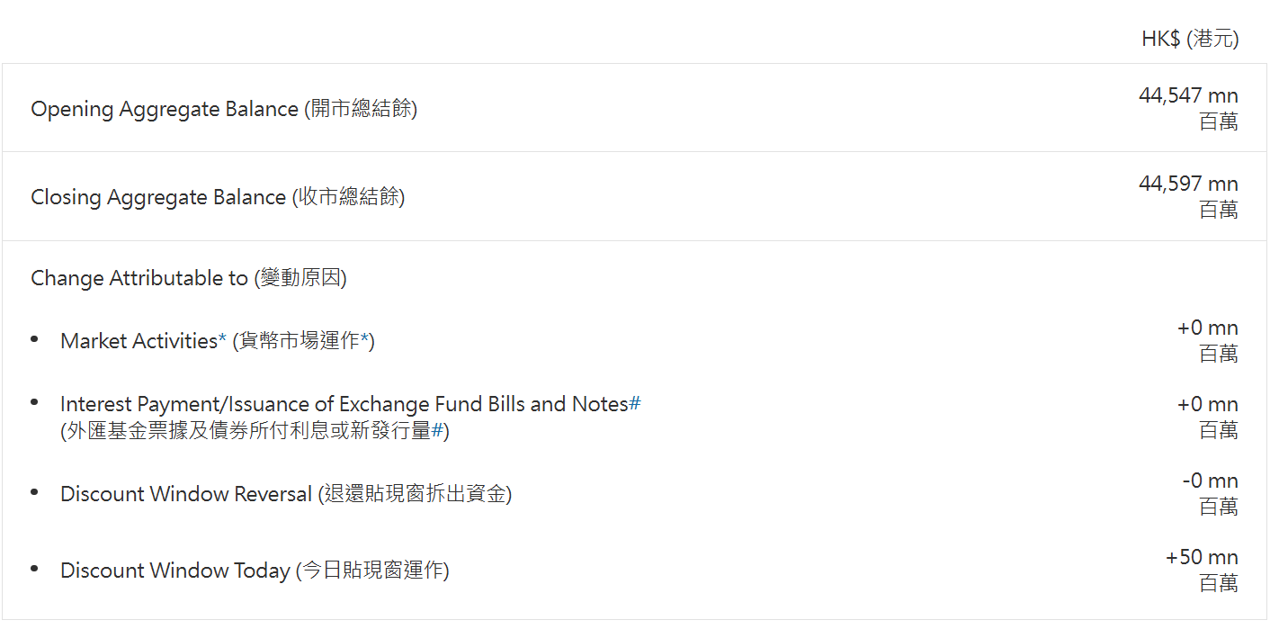 香港金管局通过贴现窗口向银行投放5000万港元流动性