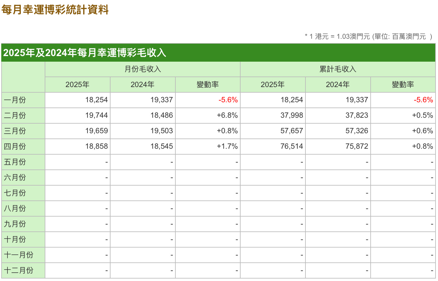 澳门4月份幸运博彩毛收入188.58亿澳门元 同比升1.7%