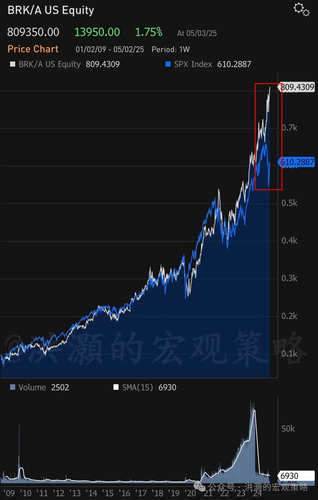 又是一个巴菲特奥马哈年会的周末。虽然今年参会人数高达五万以上,历史最高,然而近年来互联网上对于会议的关注和讨论,新鲜感开始逐渐退潮。令人费解的是,虽然巴菲特自1965年以来的确大幅跑赢标普,期间类似资金体量的、能够跑赢巴菲特的基金经理凤毛麟角,但2009年至2024年巴菲特并没有跑赢标普指数,虽然业绩依然十分优秀(图)。