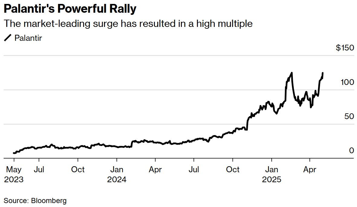 当其他人工智能公司和动量股宠儿因关税相关不确定性而停滞不前时,Palantir延续了去年340%的暴涨势头。该股不仅是特朗普总统约一个多月前宣布关税以来表现最佳的股票,也是标普500指数今年涨幅最大的成分股(上涨64%),目前仅略低于2月创下的历史高点。