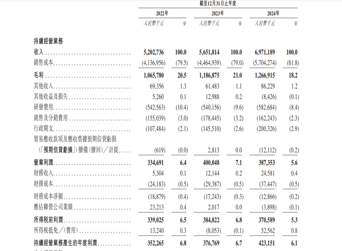 从业绩来看,主要得益于模组产品的稳健增长以及解决方案的逐渐放量,广和通实现了持续成长,其2022-2024年持续经营业务的收入为51.08亿(人民币,下同)、54.85亿、67.04亿元,年复合增速14.46%;期内持续经营业务的净利润分别为3.52亿、3.77亿、4.23亿,年复合增速9.5%。