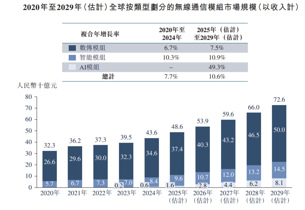 而在招股书中,广和通对该等新兴赛道的布局亦做了相应介绍。在AI模组方面,广和通于2025年1月推出了AI模组,可应用于汽车电子、智慧家庭、消费电子及智慧零售等应用场景,预计于2025年内向客户交付首批AI模组订单。