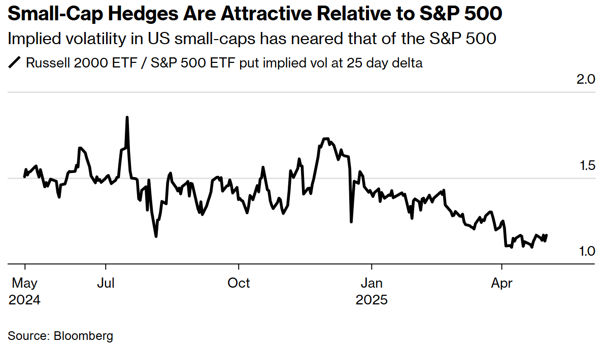 尽管存在这些风险,但相对于标普500指数,小盘股的下行对冲成本相对较低,这使其成为Boutle等策略师眼中具有吸引力的对冲工具。