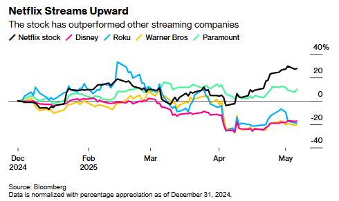 这家流媒体巨头今年表现亮眼,最新财报显示其创下利润纪录并给出超预期业绩指引,进一步巩固了其在娱乐行业的领军地位。投资者持续追捧其股票,看好其强劲增长潜力——即便经济下行,用户也不太可能退订服务,这种抗衰退特性更加增强了其吸引力。
