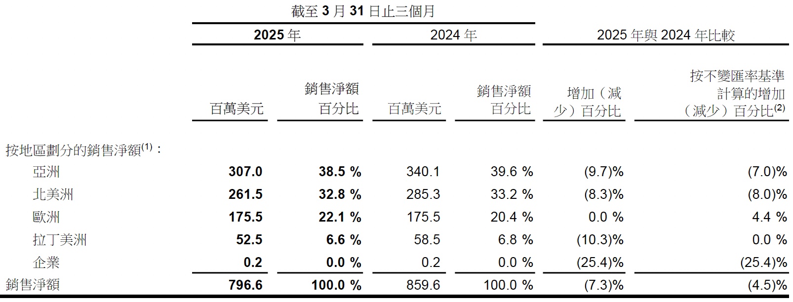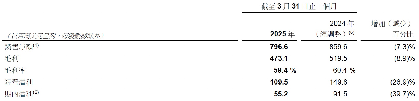 继2024年报营收、净利双降后,新秀丽新交出的25年一季报再度向市场泼出了一盆冷水。数据显示,今年一季度,新秀丽的8亿美元,同比减少了7.3%;毛利4.73亿美元,同比减少了8.9%;而净利润跌幅则更是达到了39.7%,期内仅有0.55亿美元。