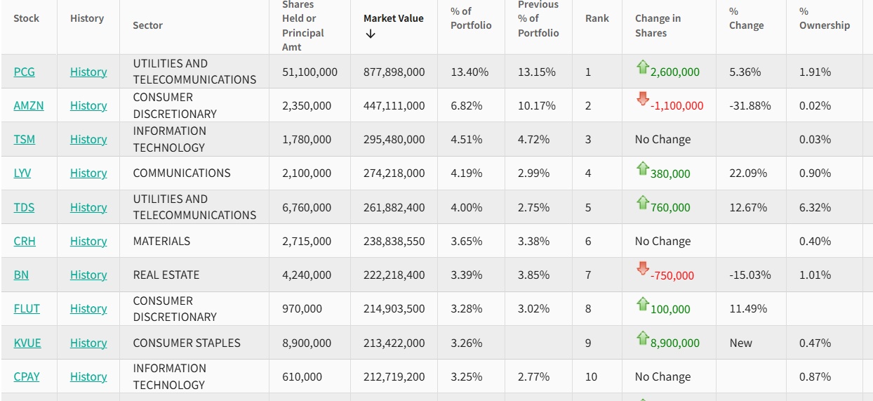 Third Point截至第一季度的第六到第十大持仓标的分别为:CRH水泥(CRH.US)、Brookfield Corporation (BN.US)、Flutter Entertainment PLC (FLUT.US)、Kenvue Inc (KVUE.US)以及Corpay Inc(CPAY.US),从医疗保健巨头强生拆分出的Kenvue Inc 乃新增持仓,Brookfield仓位被削减15%,Flutter Entertainment持仓数量增长11.49%。