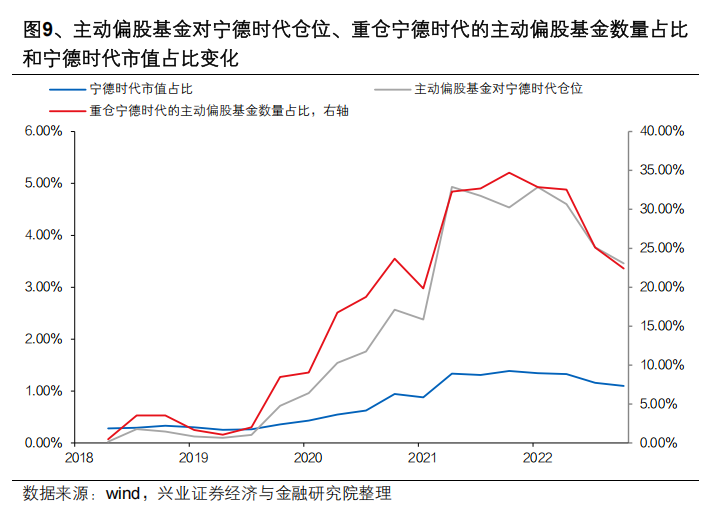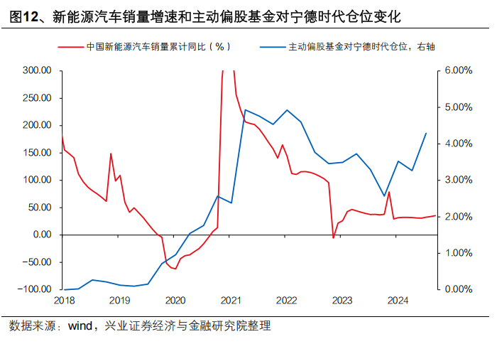 例如,2019年起这轮高端制造业景气周期,主动投资大幅加仓其中最具代表性的新能源,并获得丰厚的回报。整体来看,2018Q1-2021Q2,主动偏股基金对宁德时代仓位由0.02%提升至4.93%,重仓宁德时代的主动偏股基金数量占比提升31.8%,而同期宁德时代市值占比仅提升1.1%。分阶段来看,宁德时代上市后,由于业绩波动较大且新能源产业周期尚未明朗,主动偏股基金持仓并不高,但2019年四季度后,尽管宁德时代业绩和新能源车企销量尚未出现反转拐点,随着产业趋势逐步明朗,主动基金开始持续加仓宁德时代至2021Q2,和公司股价上涨斜率最快的阶段高度吻合。
