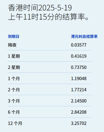 智通财经APP获悉,5月19日,港元三个月及以下拆息全线向下,其中,与楼按相关的一个月拆息跌10基点报1.19048%,为2022年7月25日后最低。