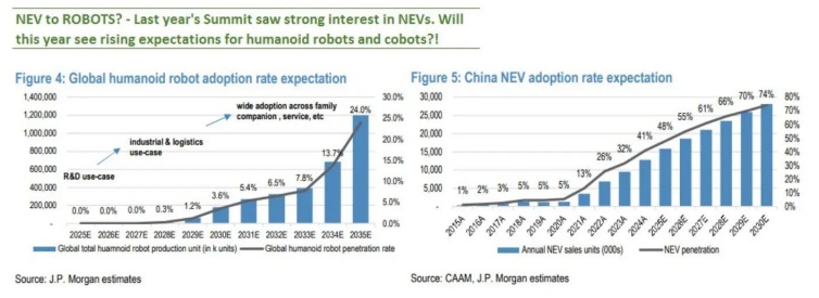 下图:从新能源汽车到机器人?去年的峰会对新能源汽车表现出浓厚兴趣,今年是否会对人形机器人和协作机器人(Cobots)的预期上升?