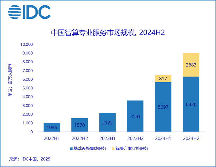智通财经APP获悉,国际数据公司 (IDC)最新发布的《中国智算专业服务市场(2024下半年)跟踪》报告显示, 2024下半年中国智算专业服务整体市场规模达到90.1亿元人民币。其中,智算基础设施集成服务市场同比增长76.2%,市场规模达63.3亿元人民币;智算解决方案实施服务市场本期首次披露,市场规模达26.8亿元人民币。