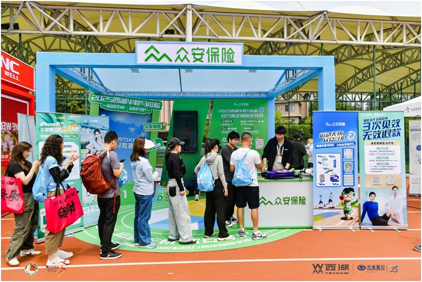 赛前准备期间,众安保险在本次赛事领物区搭建融合品牌特色与运动服务的特色展台,参赛选手不仅可以在这里了解运动保障知识,掌握实用康复技巧,还能抽取包括运动护具、能量补给等实用装备。众安保险的工作人员在现场热情接待每一位前来咨询的跑者,详细解答他们关于保险保障的各类疑问,为参赛者们注入满满的安全感,将品牌展台打造成赛前的“加油站”,让每一位西湖半程马拉松的参与者都能感受到有温度的参赛体验和全面的赛事保障。