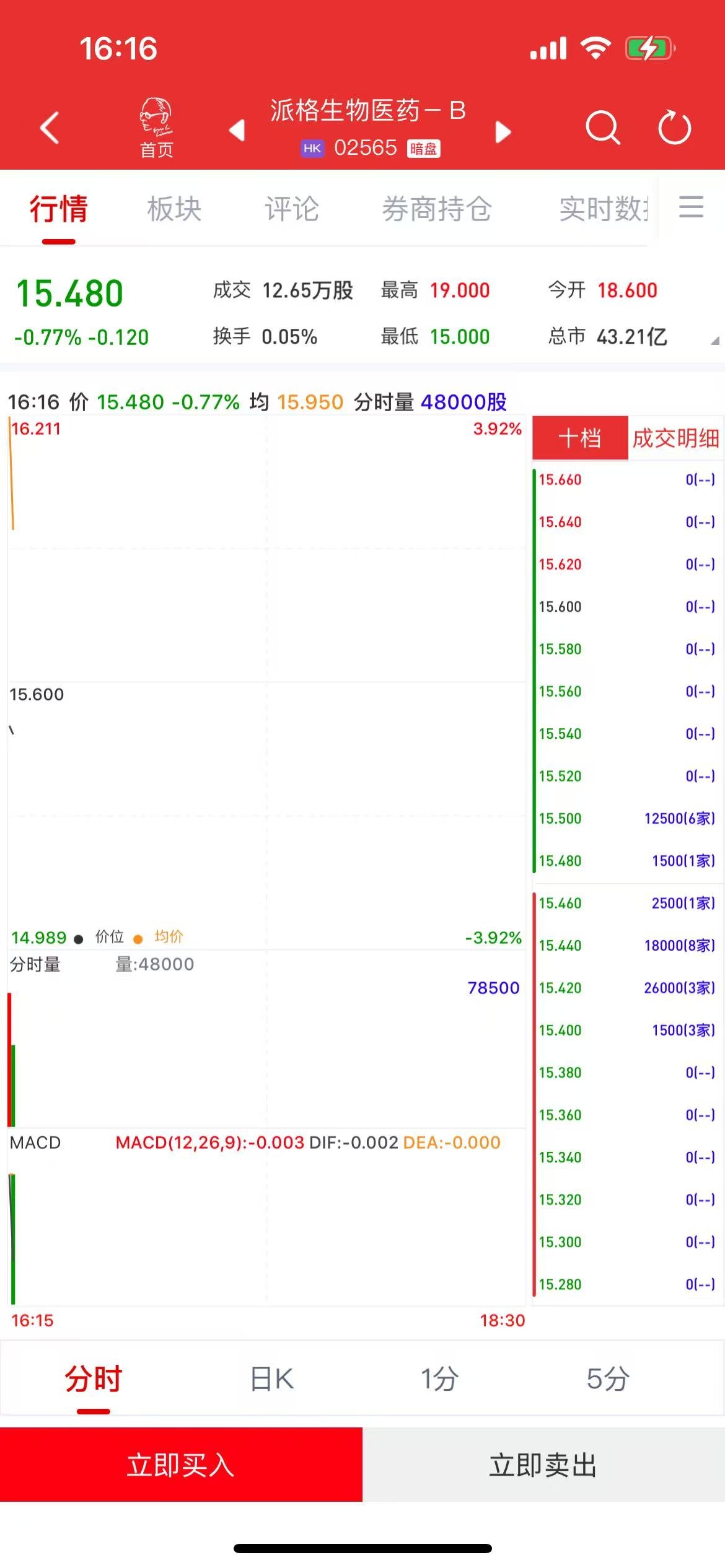 智通财经APP获悉,派格生物医药-B(02565)将于5月27日(周二)在香港挂牌。截至发稿,利弗莫尔证券暗盘交易显示报价15.48港元,较招股价15.60港元下跌0.77%,每手500股,不计手续费,每手亏60港元。