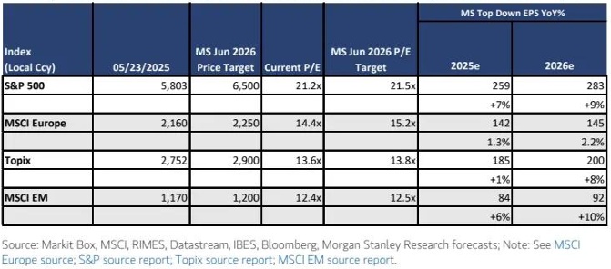 大摩认为,美国股市将优于其他股票市场。该行表示,美国股市估值已重新调整,但市场仍对关税全面影响存有不确定。该行偏好高质量的周期股、大盘股和杠杆率较低、估值较低的防御型股票。