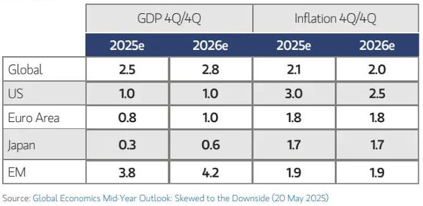 大摩表示,关税冲击抑制了全球需求,同时也给美国的供应带来了压力,美国政府的移民限制措施也将拖累经济。在欧元区,关税拖累了出口和投资,一揽子财政计划带来的提升不足以克服这种拖累。在日本,全球经济增长放缓拖累了该国出口和投资。