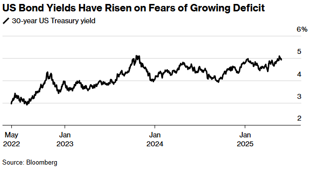 沃尔德伦指出,美国国债发行量激增正推高长期利率,尤其30年期美债收益率已攀升至近二十年来最高水平。这一趋势不仅加重政府偿债负担,更令财政赤字扩大与整体经济融资成本上升的风险加剧。值得注意的是,其表态正值特朗普政府与国会就减税法案展开博弈之际,市场普遍担忧相关政策可能进一步恶化美国财政前景。