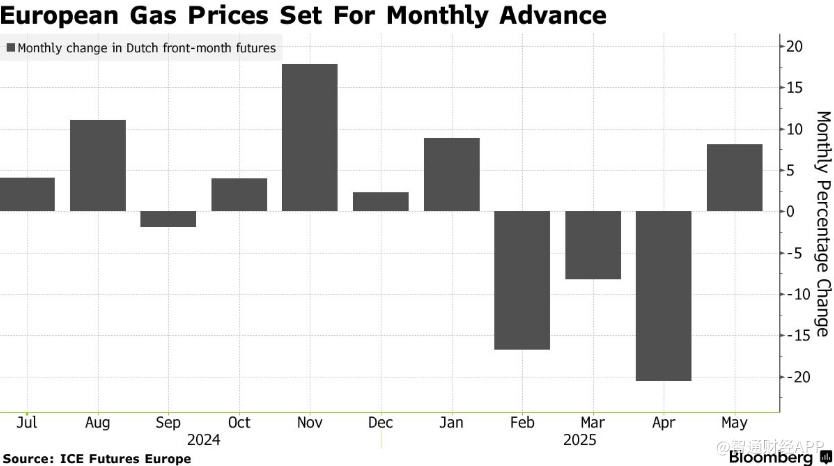 智通财经APP获悉,在地缘政治形势变化和市场供应趋紧的推动下,欧洲天然气价格有望实现自1月份以来的首次月度上涨。基准近月天然气期货的月度涨幅预计在8%左右,尽管7月合约周五略有下跌。今年4月,受美国主导的贸易战引发的经济担忧影响,近月合约下跌逾20%。