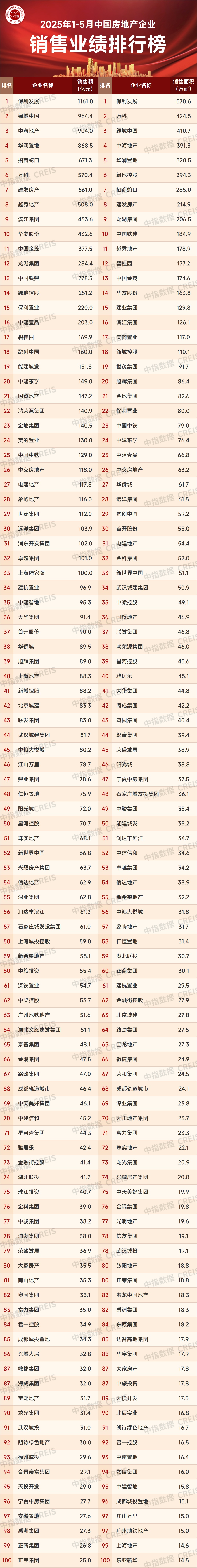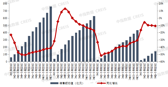 业绩:TOP100房企销售额1-5月同比下降10.8%,降幅较1-4月基本持平