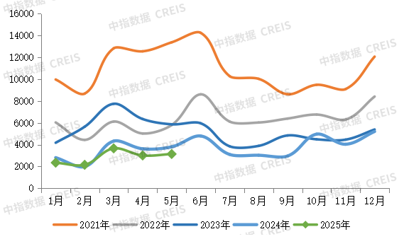 2025年1-5月,各阵营房企销售额均有下降。其中,TOP10房企销售额均值为707.5亿元,较上年下降9.5%;TOP11-30房企销售额均值为175.0亿元,较上年下降13.5%;TOP31-50房企销售均值为86.8亿元,较上年下降3.6%;TOP51-100房企销售额均值为42.5亿元,同比下降15.6%。