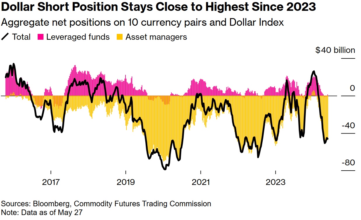 报告核心逻辑指向两大驱动因素:其一,美联储政策转向将推动实际利率下行。摩根士丹利预计,到2025年末,10年期美债收益率将降至4.0%,而随着美联储累计降息175个基点,2026年基准利率区间将出现更大幅度的下降,这将显著削弱美元资产吸引力;其二,全球贸易格局重构正在重塑货币格局。特朗普政府加征关税等政策不仅冲击市场信心,更促使国际市场重新评估美元的储备货币地位,而当前商品期货交易委员会(CFTC)数据显示,目前的看跌情绪远未达到历史极端水平,凸显出美元未来可能进一步走弱。