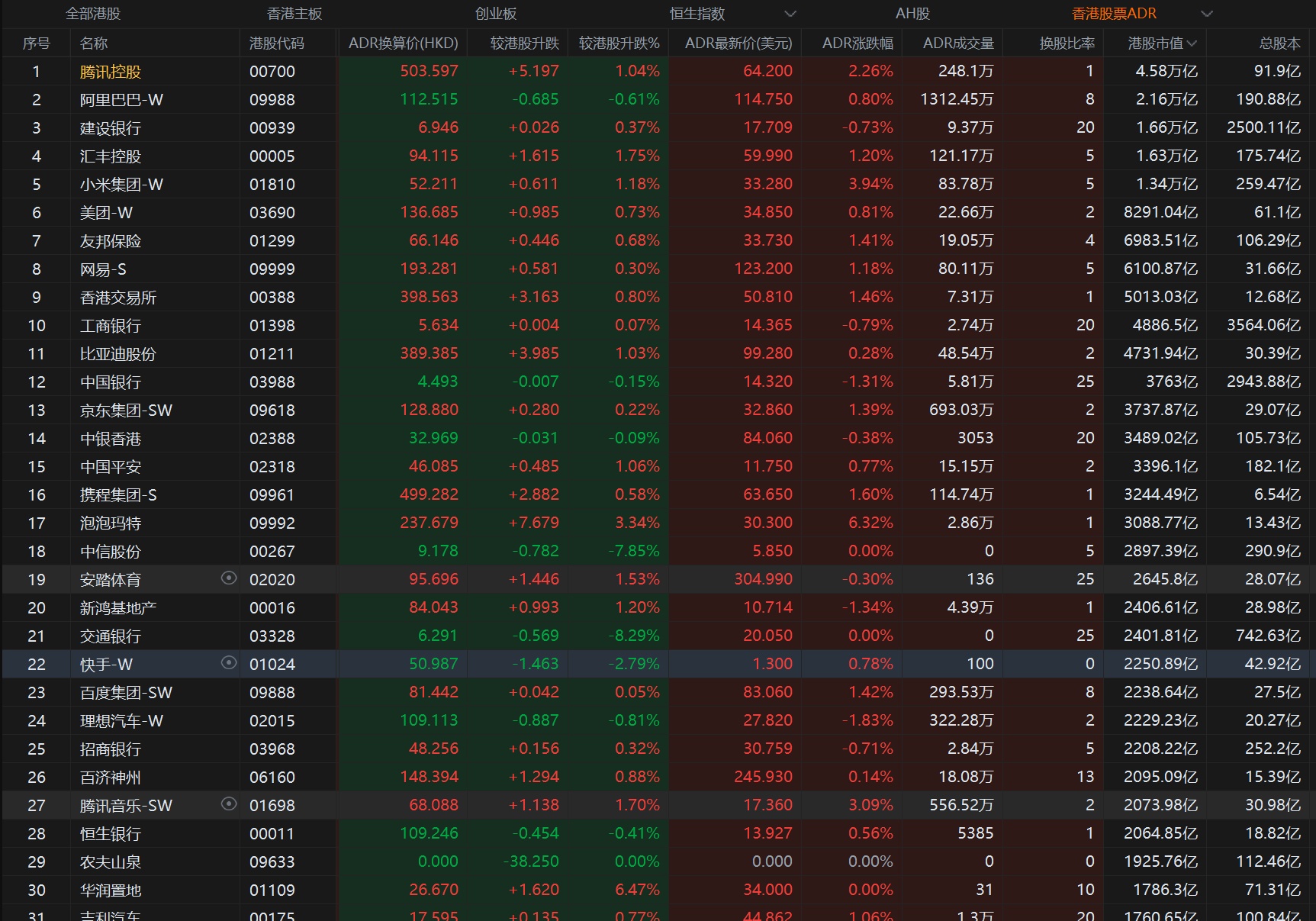 智通财经APP获悉,周一美股三大股指集体上涨,恒生指数ADR上涨,按比例计算,收报23242.11点,较香港收市涨84.14点或0.36%。