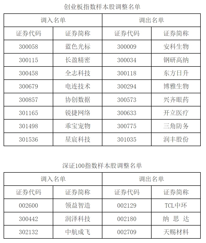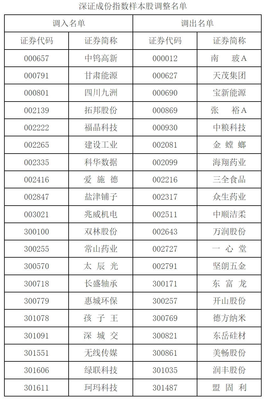 智通财经APP获悉,6月3日,深交所官网发布公告称,根据指数编制规则,深圳证券交易所和深圳证券信息有限公司决定于2025年6月16日对深证成指、创业板指、深证100等指数实施样本股定期调整。其中,中钨高新(000657.SZ)、甘肃能源(000791.SZ)等被调入深证成份指数;蓝色光标(300058.SZ)、长盈精密(300115.SZ)等被调入创业板指数;领益智造(002600.SZ)等被调入深证100指数。