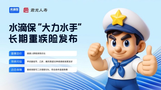 据了解,今年水滴保联合保险公司定制了一款长期重疾险“大力水手”,不仅针对带病人群大幅降低投保门槛,核保尺度突破历史,首次将甲状腺结节4a级、乙肝大三阳等19种传统拒保疾病纳入可承保范围,而且开创性地引入健康管理互动机制,在用户首次投保完成后,会陪伴用户进行主动的慢病管理,如果用户的健康指标有所提升,那么可以降低保费或者恢复被除外的保障。