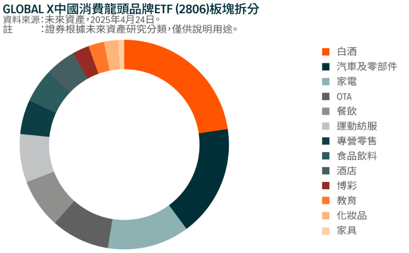 面对外部压力,市场对刺激政策加码的预期持续强化,未来资产预期这些刺激政策将促进消费的即时增长,进一步提升盈利增长预期,并带动板块的估值重估。在此背景下,Global X中国消费龙头品牌ETF通过均衡的投资组合,捕捉中国消费行业的复苏机遇。该产品投资于多个政策受益的子板块(如OTA、餐饮、汽车、家电)、低关税风险的防守型行业(如饮料),以及快速增长的新消费行业(如流行玩具)。