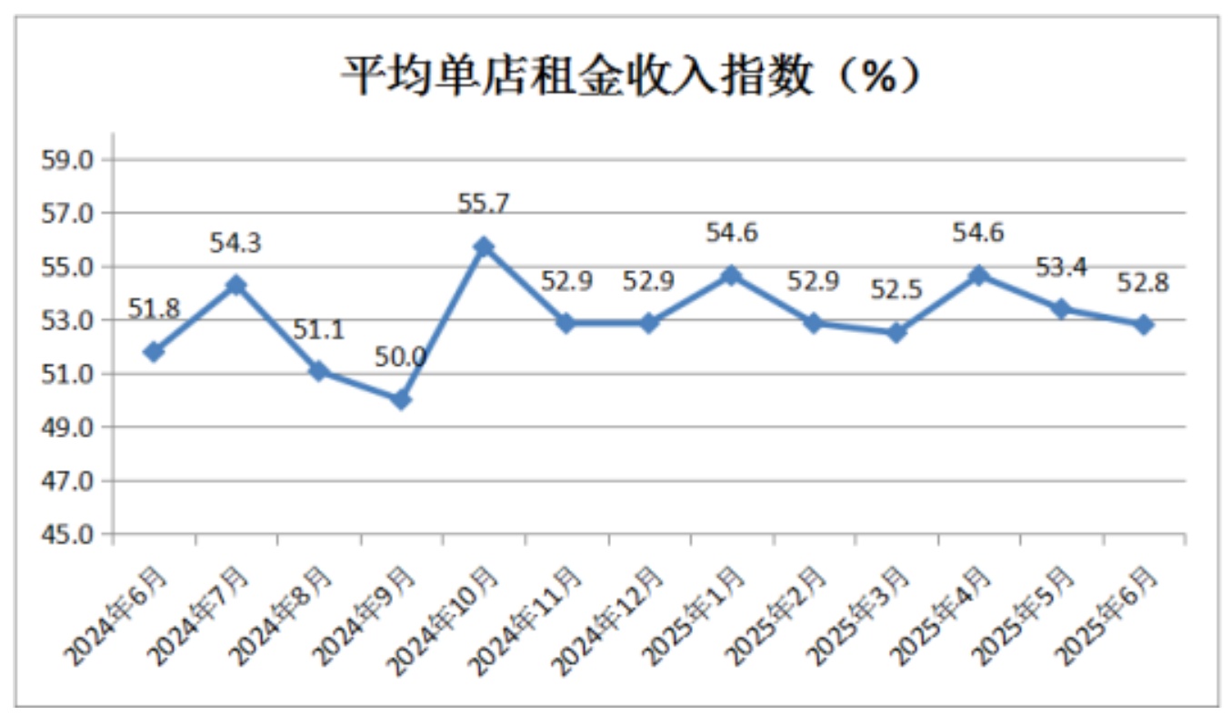平均单店租金收入指数为52.8%,较上月下降0.6个百分点,表明租赁经营类企业营业收入预期下降。