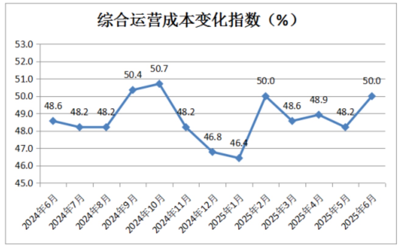 综合运营成本反向指数为50.0%,较上月上升1.8个百分点,表明租赁经营类企业运营成本压力有所好转。