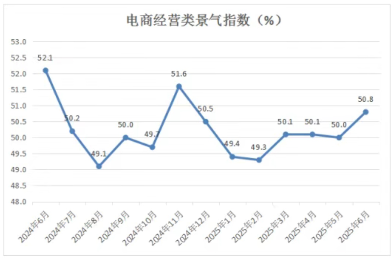 电商经营类指数为50.8%,较上月上升0.8个百分点。分析认为,受“618”促销活动影响,6月份电商经营类企业预期较好。