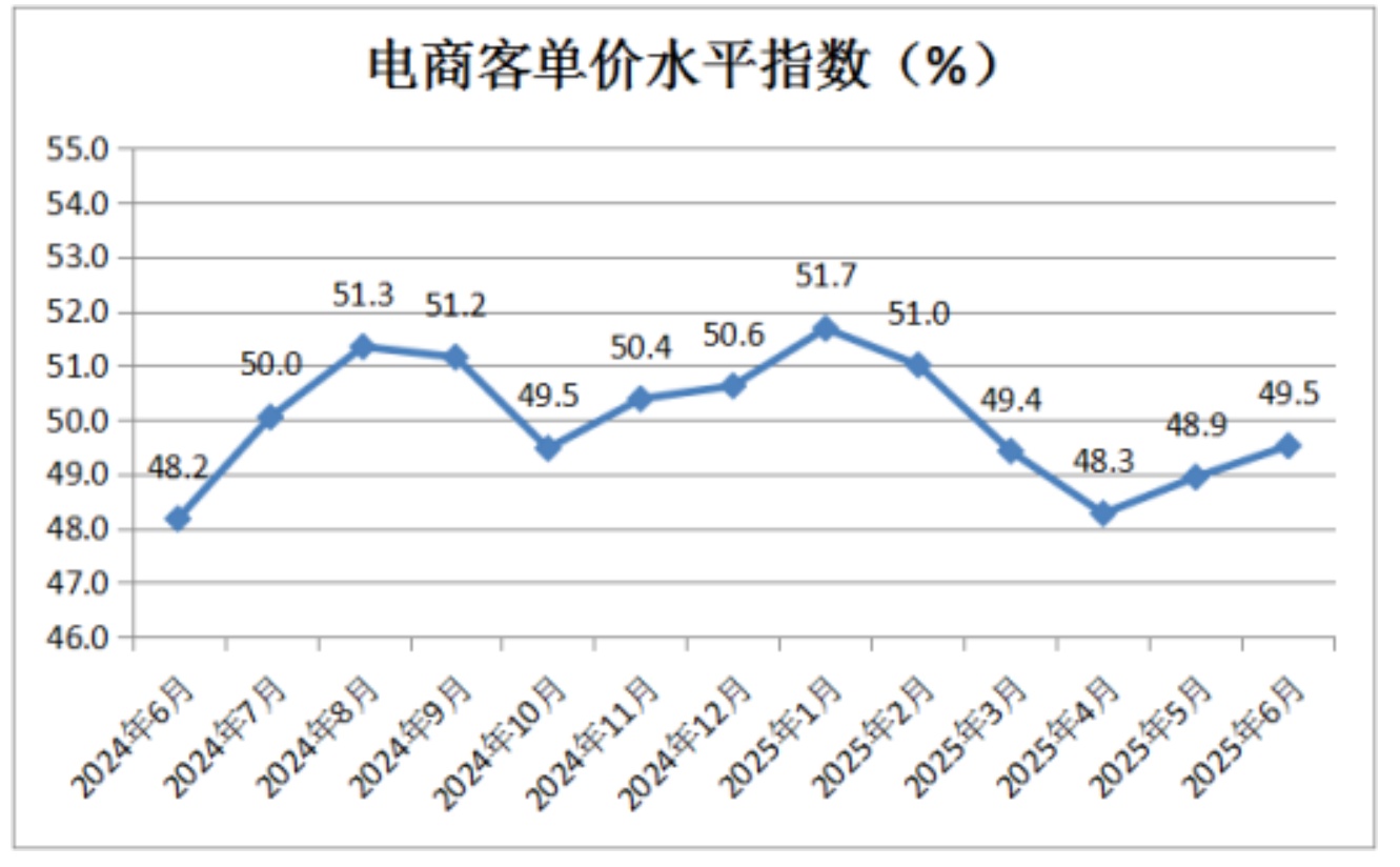 电商客单价水平指数为49.5%,较上月小幅上升0.6个百分点,分析认为,电商客单价水平连续两个月上升,呈现线上积极促销趋势。