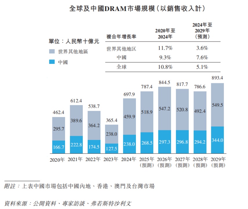 尽管力积存储在过去三年中面临亏损,但其未来的发展前景仍值得期待。首先,全球及中国内存芯片及AI存算相关产业的持续增长为公司提供了广阔的市场空间。根据弗若斯特沙利文的预测,2024年至2029年,全球DRAM市场规模将以5.1%的复合年增长率增长,而中国DRAM市场预计将以7.6%的复合年增长率增长。这表明,随着市场需求的不断扩大,力积存储有望通过进一步拓展市场份额来实现收入增长。