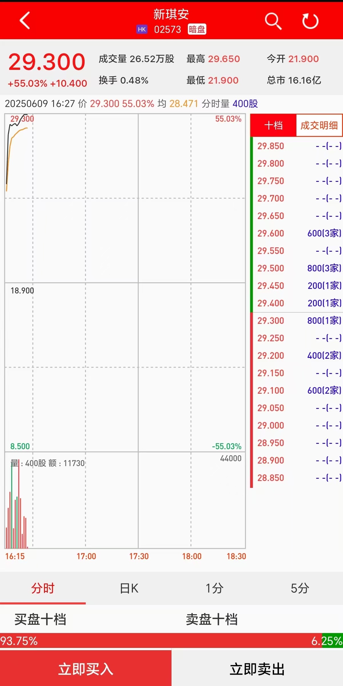 智通财经APP获悉,新琪安(02573)将于6月10日(周二)在香港挂牌。截至发稿,利弗莫尔证券暗盘交易显示报价29.3港元,较招股价18.9港元上涨55.03%,每手200股,不计手续费,每手赚2080港元。