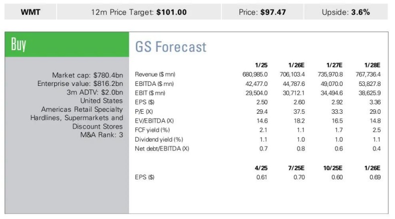 智通财经APP获悉,沃尔玛于 6 月 5 日和 6 日举办了其 2025 年“员工周”活动,其中包括店铺参观和管理层会议。对此,高盛发布研报,给予沃尔玛(WMT.US)“买入”评级,目标价101美元。