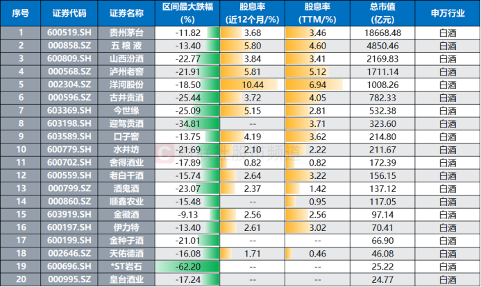 白酒股回撤已近一季,股息率随之推升高位