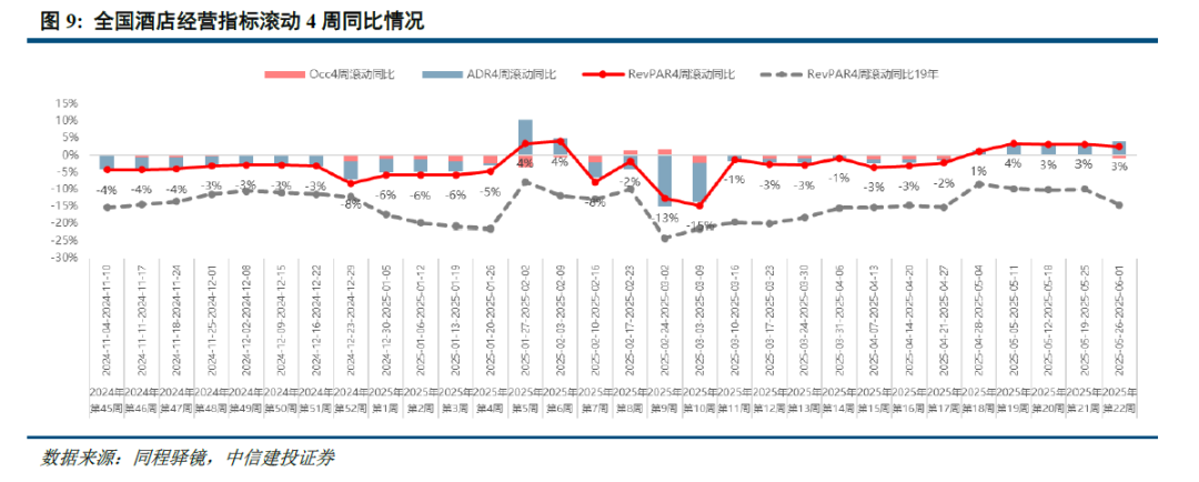 酒店:2025高频数据端RevPAR稳定的同比回升将成为市场判断连锁酒店投资机会的重要信号。行业25Q1经营效率持续承压静待拐点,RevPAR同比和行业供给增速是决定年内β的关键因素。