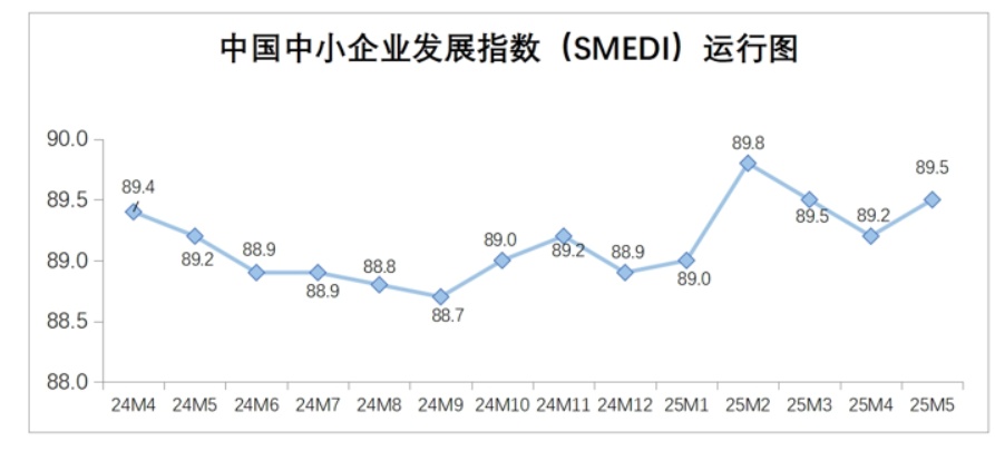 智通财经APP获悉,6月10日,中国中小企业协会发布数据显示,5月中国中小企业发展指数(SMEDI)为89.5,较4月上升0.3点,结束2个月下降后,回升明显。其中,分项指数7升1平、分行业指数6升2降,分区域指数3升1降。