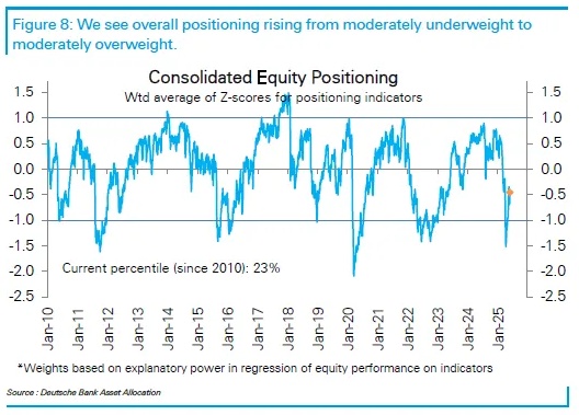 尽管美国股市已从4月份关税引发的下跌中强势反弹,但大型基金经理的持仓仍明显偏低:德意志银行的数据显示,自2010年以来,其整体股票仓位之低仅在23%的时间里出现过。