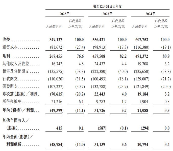 业绩方面,CF017的成功商业化使长风药业的收入大幅增加,2022年度、2023年度以及2024年度,长风药业收益分别约为3.49亿元、5.56亿元、6.08亿元人民币。同期,该公司实现毛利分别约为2.67亿元、4.58亿元、4.91亿元。