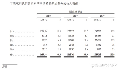 颖通控股的香水销售表现亦迎合了这种趋势。具体来看,公司香水销量从2023财年的654.05万件,2025财年达717.41万件,年复合增长率约4.6%;同期平均售价从215.6元提升至220.3元,涨幅2.2%。值得注意的是,香水业务销售“量价齐升”情况下,毛利率却呈下滑趋势,2023-2025财年,香水业务的毛利率分别为49.1%、48.5%、48.4%。
