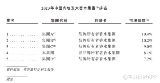 根据弗若斯特沙利文报告,按2023年零售额计,颖通控股是中国内地第四大香水集团,市占率约为8.1%。公司于2023年就香水产品零售额在非品牌所有者香水集团中排名第一。