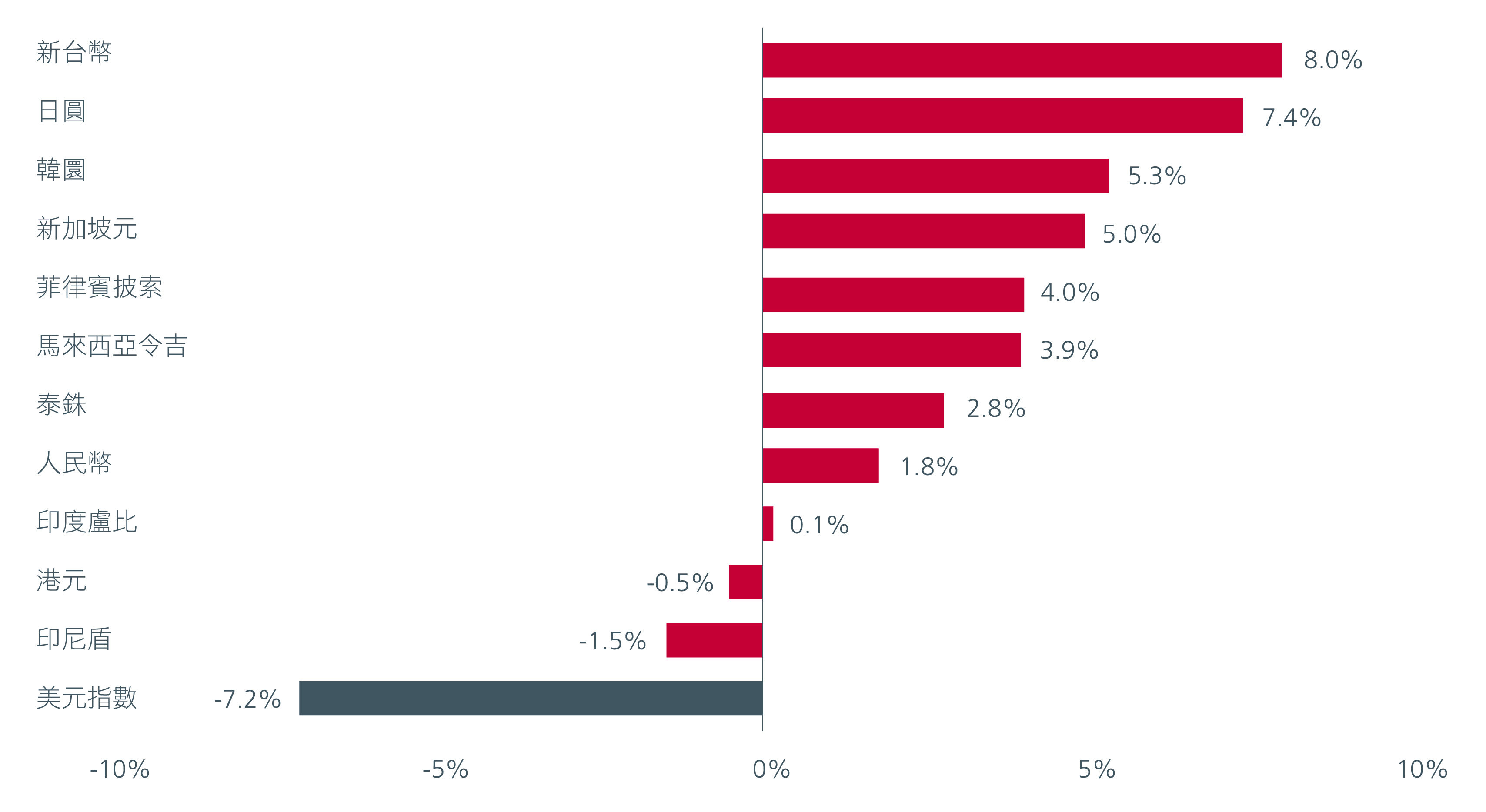 除了潜在减息的利好因素外,多个市场亦受惠于印尼、马来西亚、印度、韩国及中国的强劲内需等特殊推动因素。另一方面,新加坡是全球少数仍获评为AAA级的政府债券市场之一,并凭借其低波幅及高信贷评级而享有避险资产地位。