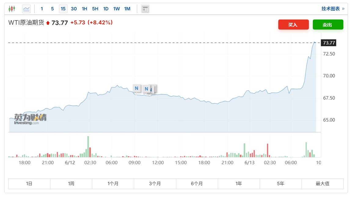 智通财经APP获悉,当地时间周四晚间,在以色列未经美国支持对伊朗发动空袭后,原油期货价格暴涨,黄金期货跳升,美股期货、亚太股市急挫。