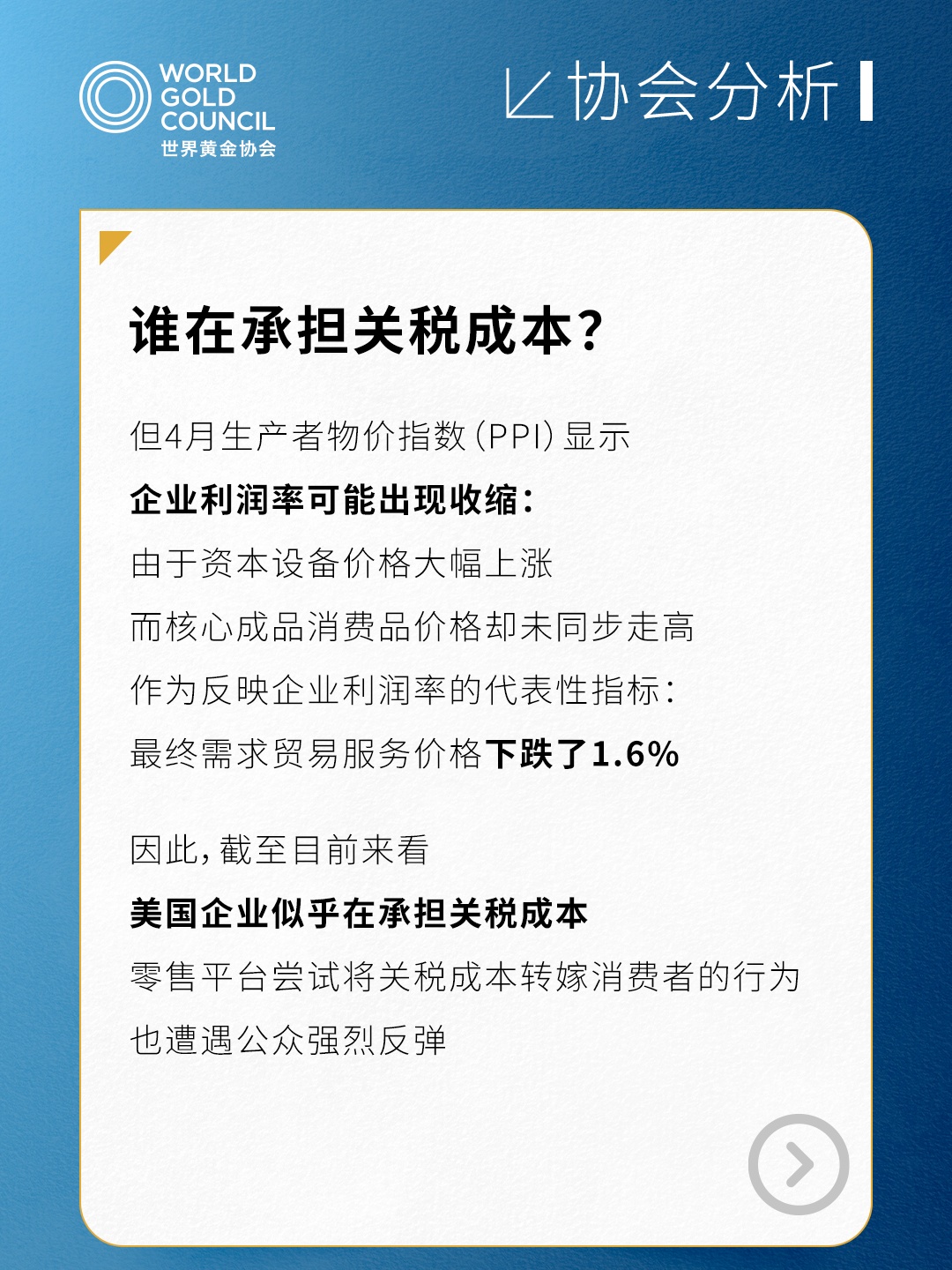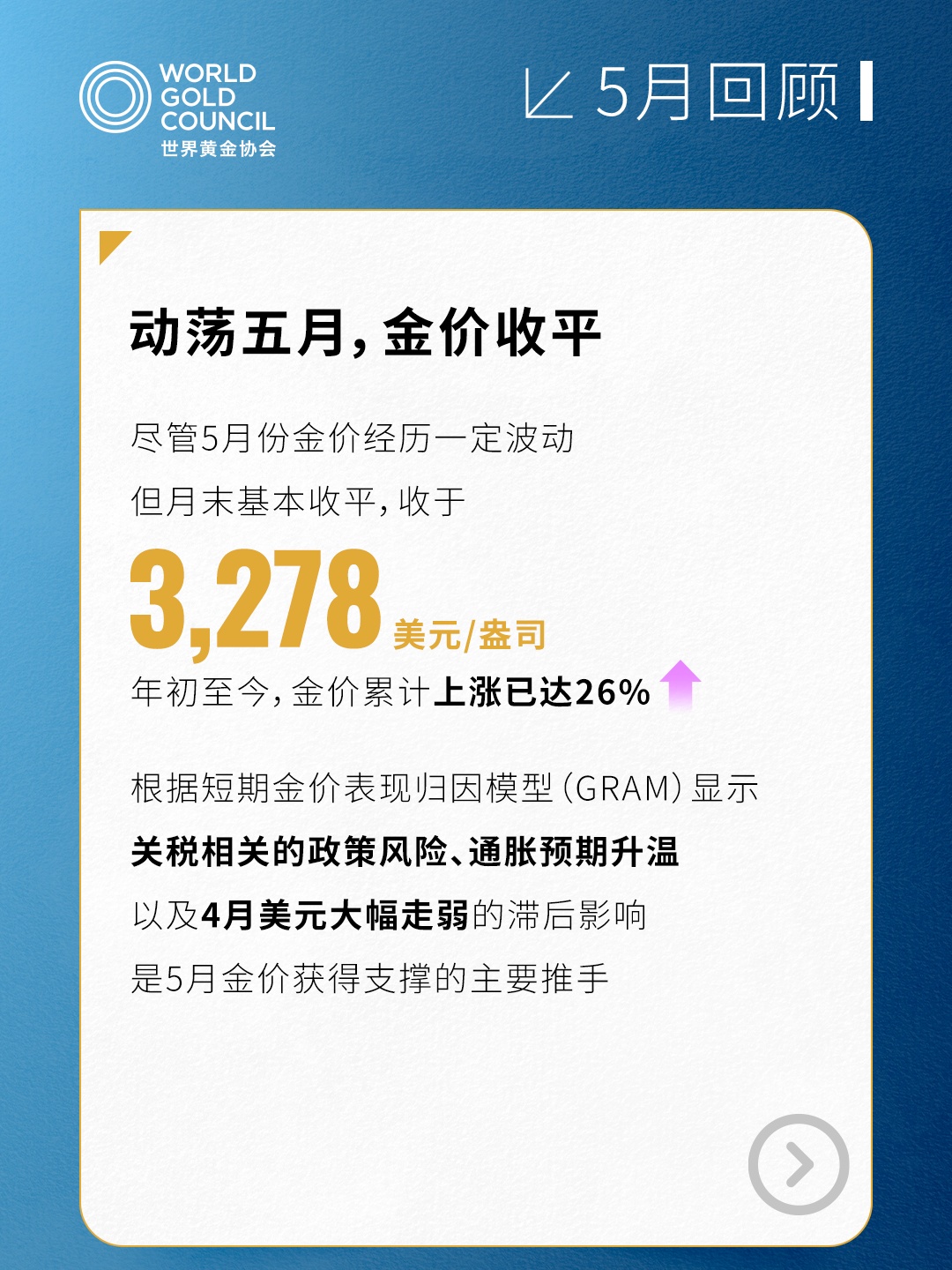 智通财经APP获悉,6月13日,世界黄金协会发发文称,尽管5月份金价经历一定波动,但月末基本收平,收于3278美元/盎司,年初至今,金价累计上涨已达26%,根据短期金价表现归因模型(GRAM)显示,关税相关的政策风险、通胀预期升温以及4月美元大幅走弱的滞后影响是5月金价获得支撑的主要推手。此外,该协会称,截至目前来看,美国企业似乎在承担关税成本,零售平台尝试将关税成本转嫁消费者的行为也遭遇公众强烈反弹。