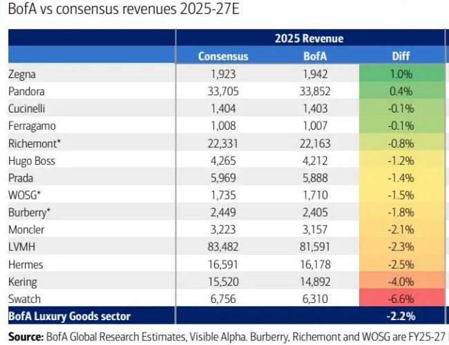 美银认为,今年 9 月 / 10 月的时装秀更为重要(但大多不会成为催化剂),因为这些秀将帮助我们了解是否有足够的新品(以更低的价格)来推动 2026 年的销量复苏,以及哪些品牌将引领这一复苏。